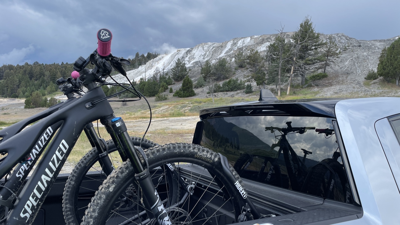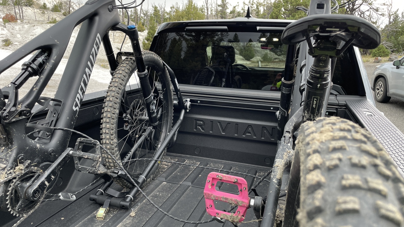 Tailgate bike pads look pretty good for simplicity, but with Rivian’s tailgate design they are tough. I bought a third party brand and used it once. Rivian has just started making their own, but honestly, lifting a 50+ pound e-bike up and over the tailgate without scratching the truck isn’t easy or fun!